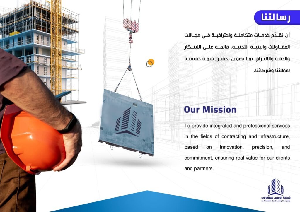 شركة الاملين للمقاولات هي شركة استثماريه رائده متخصصة في أعمال الحفريات والبنية التحتية في مدينة الرياض. نسعى إلى تقديم خدمات عالية الجودة تواكب تطور مشاريع البنية التحتية في المملكة، ونلتزم بتسليم المشاريع في الوقت المحدد وبأفضل المعايير الفنية.